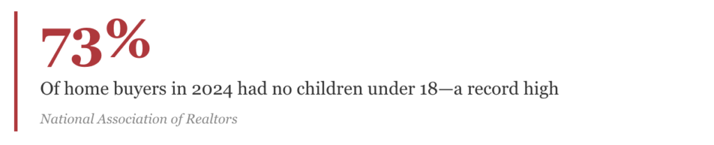 Housing researchers describe unaffordability as a “fertility tax” on young non-owners. When you cannot buy a home, you delay marriage. When you delay marriage, you delay children. When you delay children long enough, you do not have them at all.