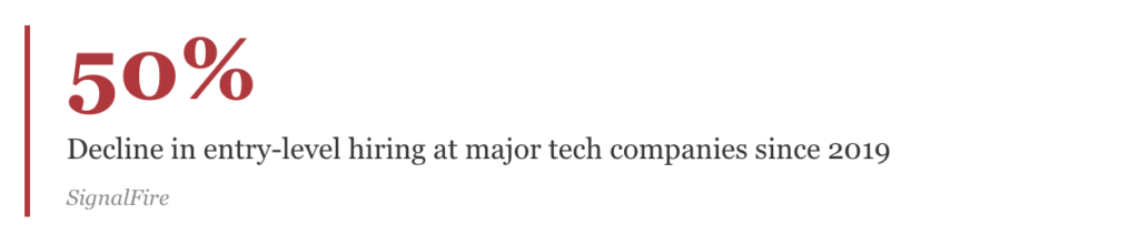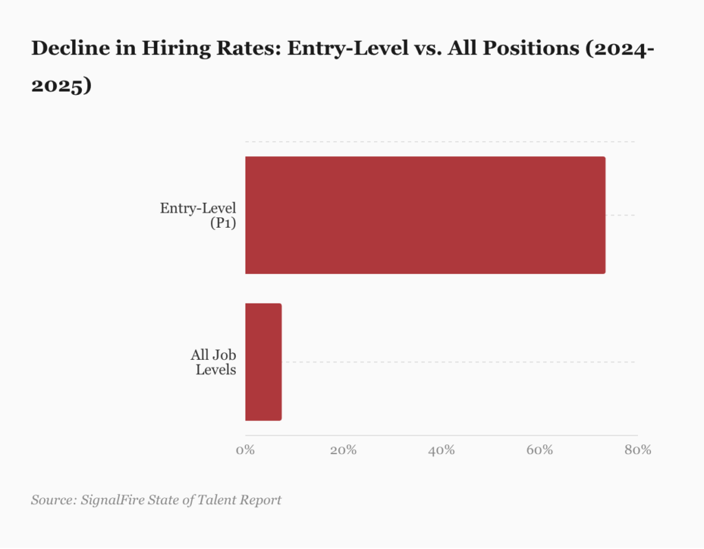| Entry-Level Decline | >50% drop since 2019 | SignalFire State of Talent 2025 |